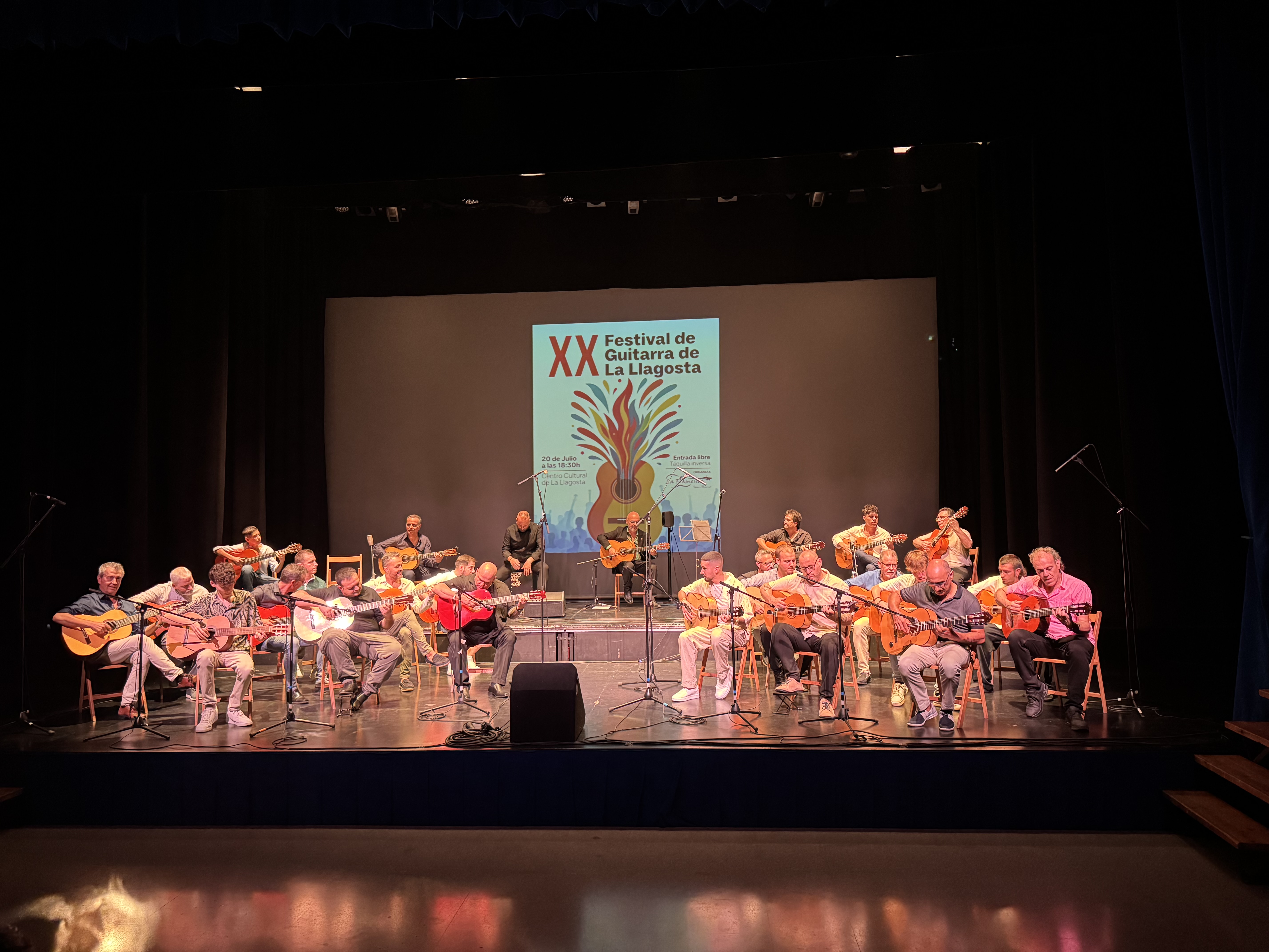 La Unión Musical La Flamenca va omplir diumenge el Centre Cultural amb la 20a edició del Festival de Guitarra. L’entitat va celebrar l’acte de fi de curs amb una trentena de persones d’amunt l’escenari, gran part d’ells alumnes d’enguany.